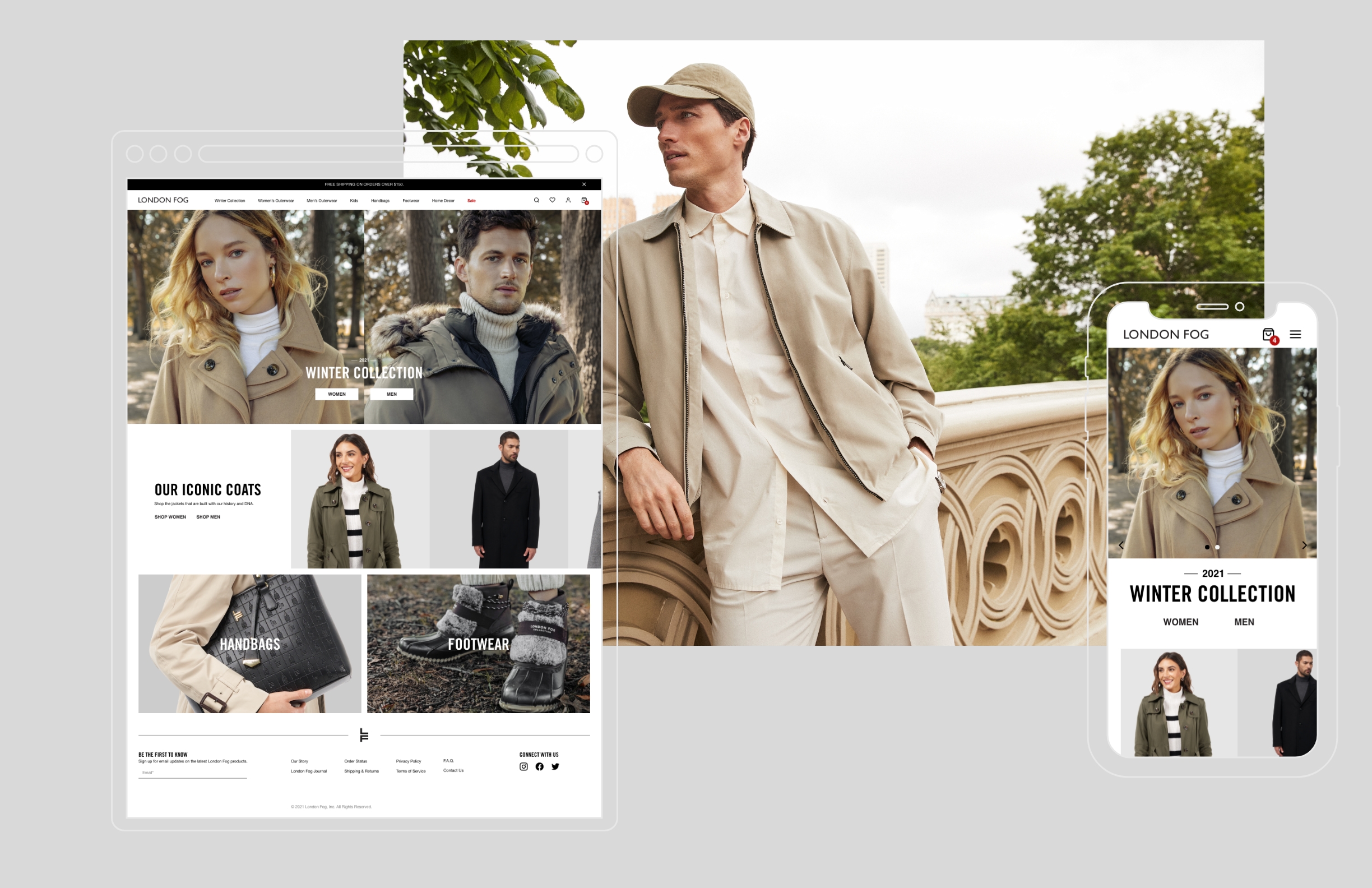 Helping facilitate a rebrand of London Fog done by corporate (that period where everybody killed their heritage), we helped fill their product image catalog, studio model shots, and redesign of their website.